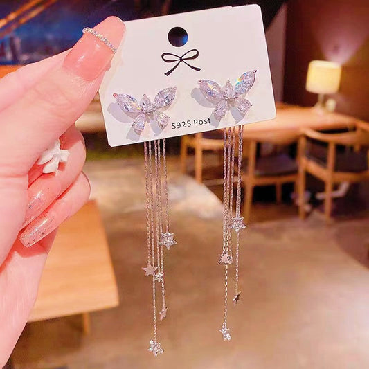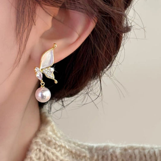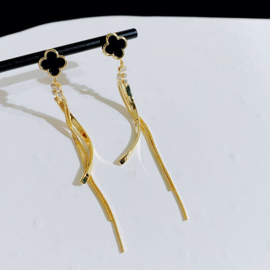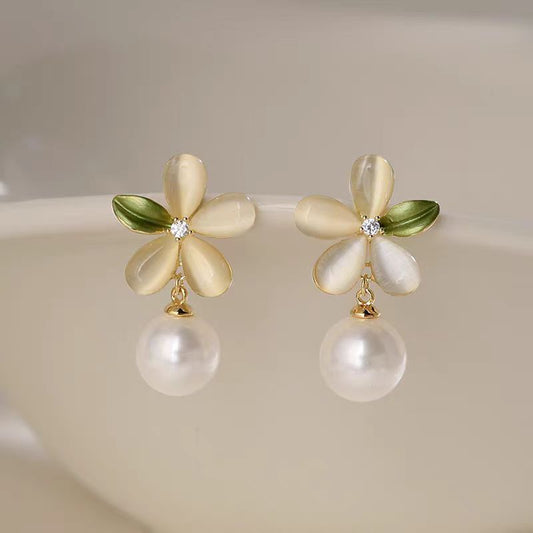 Silver Post Color Flocked Four-Leaf Flower Artificial PearlvEarrings