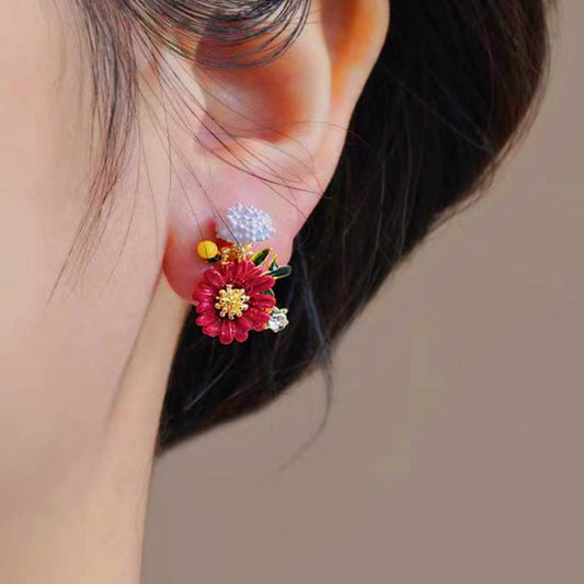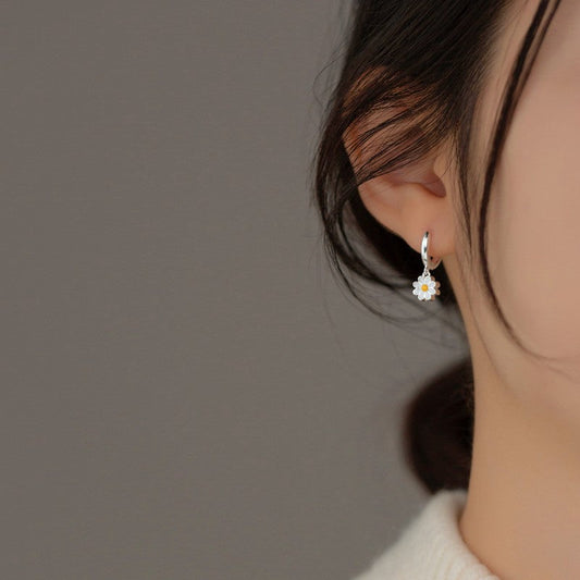 Silver Post Diamond Artificial Pearl Petal Earrings