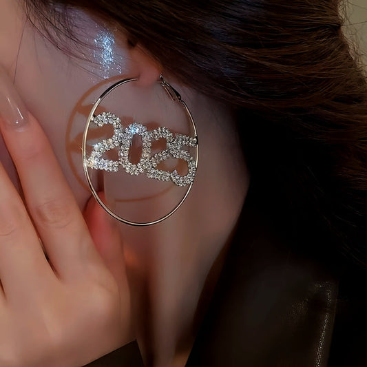 Silver Post Diamond 2025 New Year Hoop Earrings