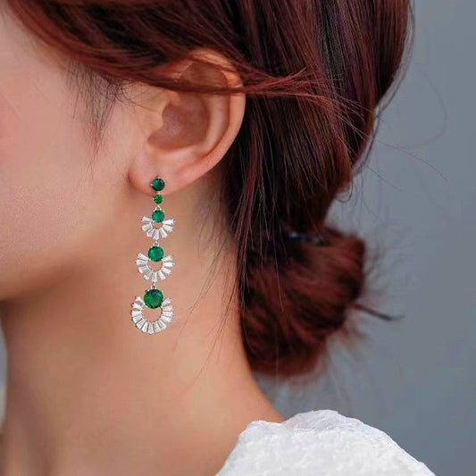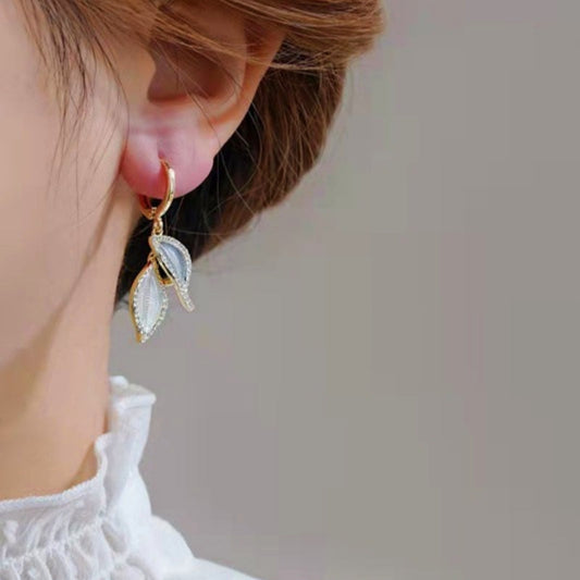 Silver Post Micropaved Flower Cat's Eye Cross Earrings