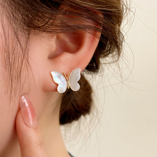 Silver Post Micro-Inlaid Mother-Of-Pearl Butterfly Stud Earrings