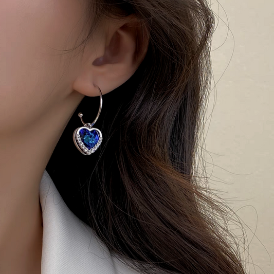 Silver Post Maillard Coffee Flower Love Heart Pearl Earrings