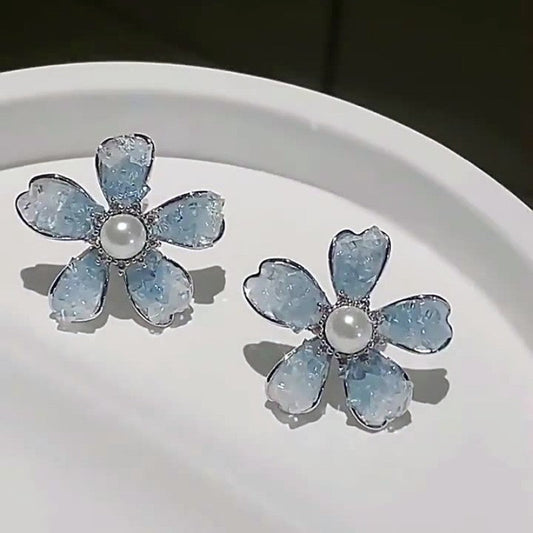 Silver Post Luxury Blue Butterfly/Blue Flower Earrings