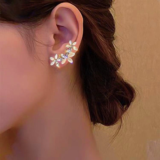 Silver Post Single Piece Zircon Flower Earrings