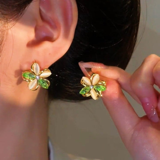 Silver Post Rhinestone Flower Earrings