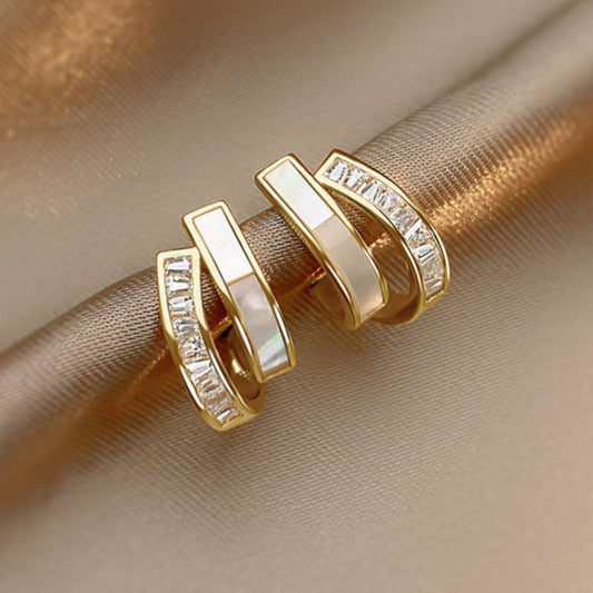 Silver Post Shell Double Layer Stud Earrings