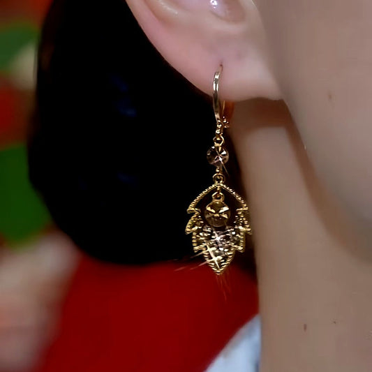 14K Gold-Plated Brown Diamond Leaf Earrings