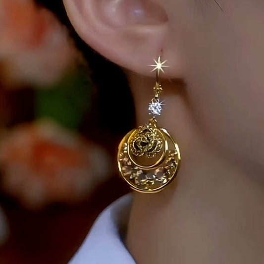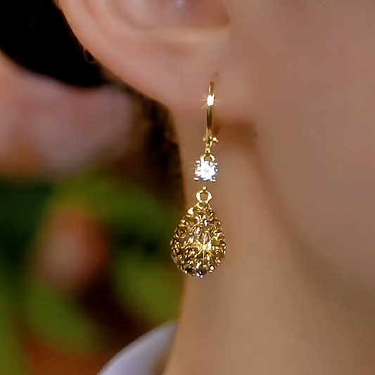 14K Gold-Plated Brown Diamond Mesh Water Drop Earrings