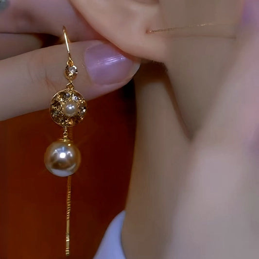 14K Gold-Plated Brown Diamond Pearl Tassel Threader Earrings