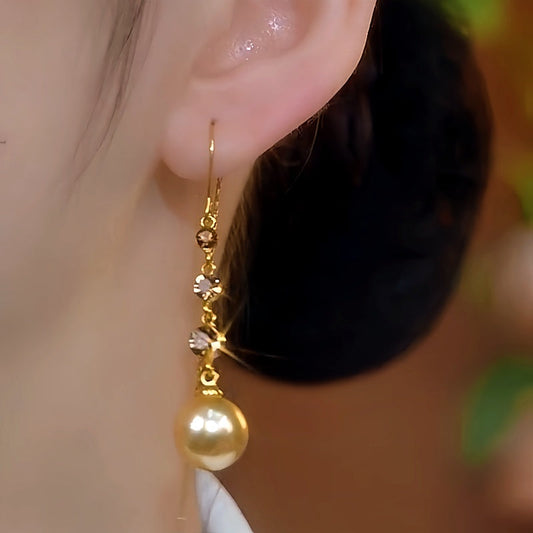 14K Gold-Plated Brown Diamond Pearl Earrings