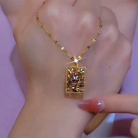 14K Gold-Plated Brown Diamond Rectangular Pendant Necklaces