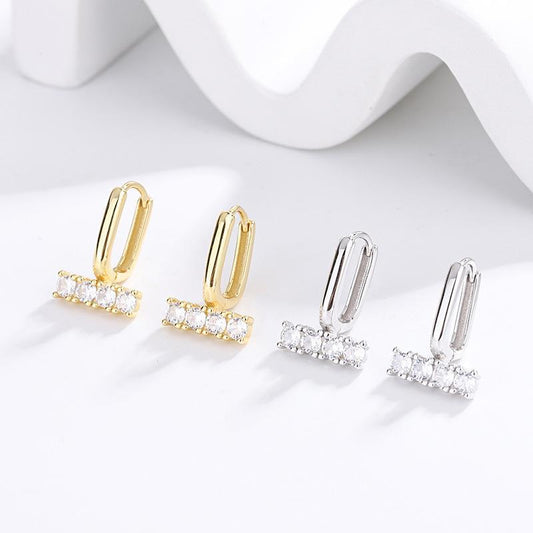 Sterling Silver 18K Gold-Plated Diamond U-Shaped Earrings
