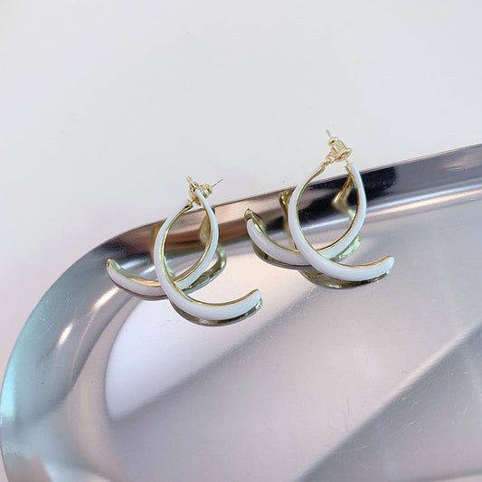 Sterling Silver 18K Gold-Plated Diamond U-Shaped Earrings