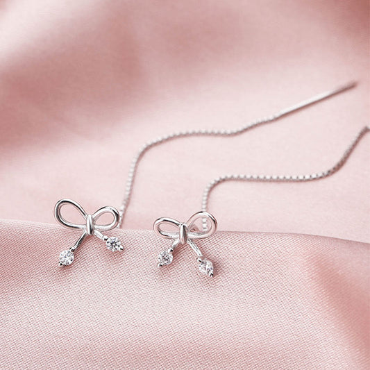 Sterling Silver Bow Threader Earrings