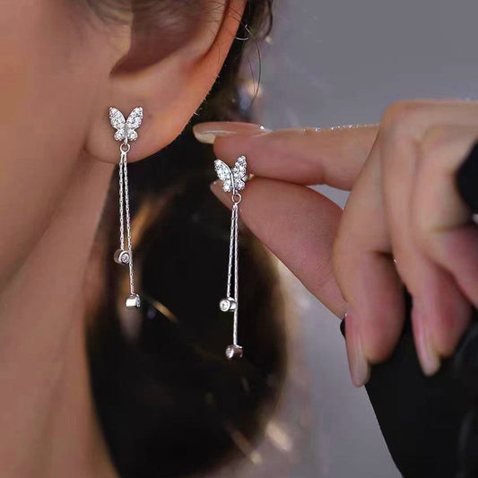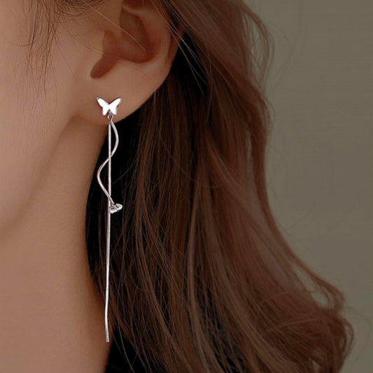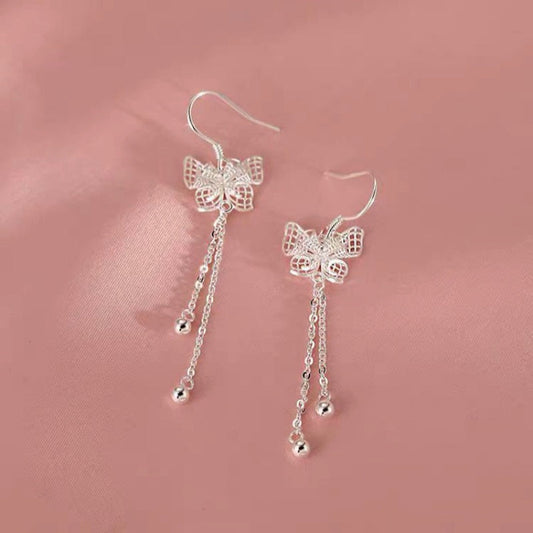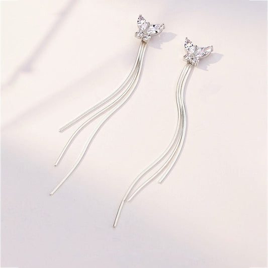 Sterling Silver Butterfly Long Tassel Earrings