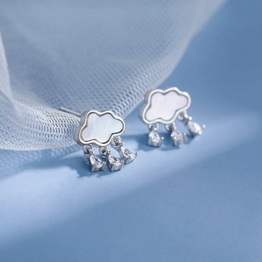Sterling Silver Cloud and Diamond Water Drop Earrings