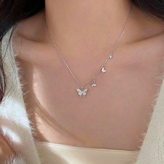 Sterling Silver Diamond Butterfly Synthetic Pearl Necklaces
