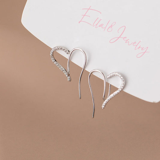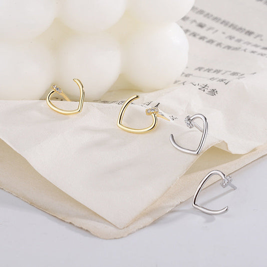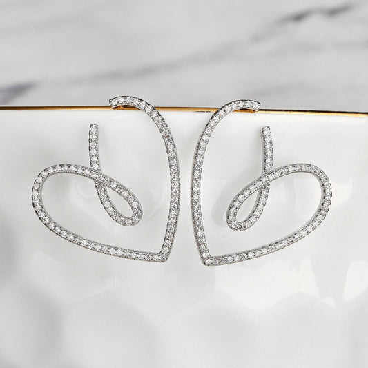 Sterling Silver Diamond Hollow Heart Bean Earrings