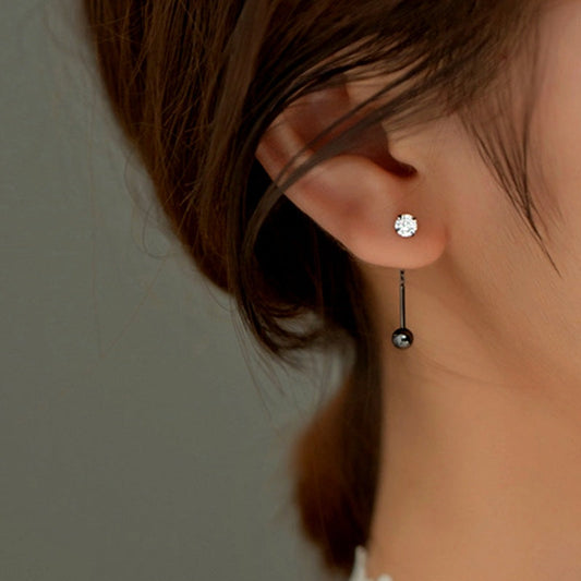 Sterling Silver Diamond Lucky Bag Pearl Ear Hooks