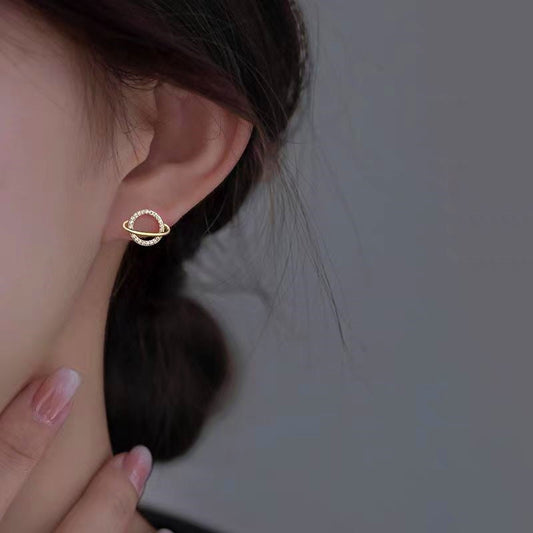 Sterling Silver Diamond Moon And Star Stud Earrings