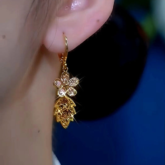 14K Gold-Plated Brown Zircon Flower Leaf Tassel Earrings