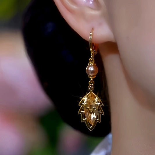 14K Gold-plated Brown Zircon Leaf Pearl Earrings