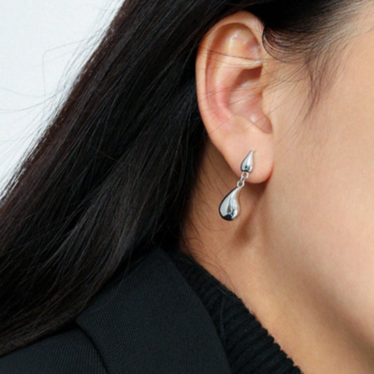 Sterling Silver Double-Layered Water Drop Stud Earrings