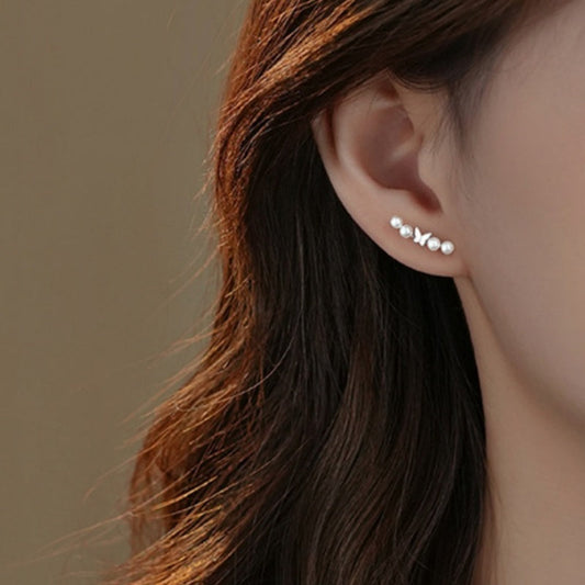 Sterling Silver Elegant Butterfly Pearl Earrings