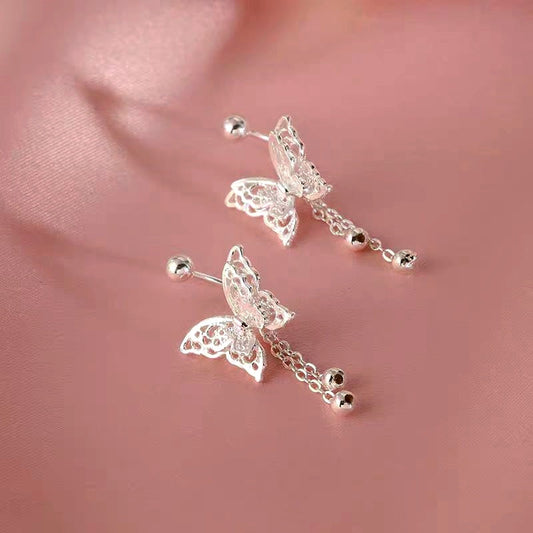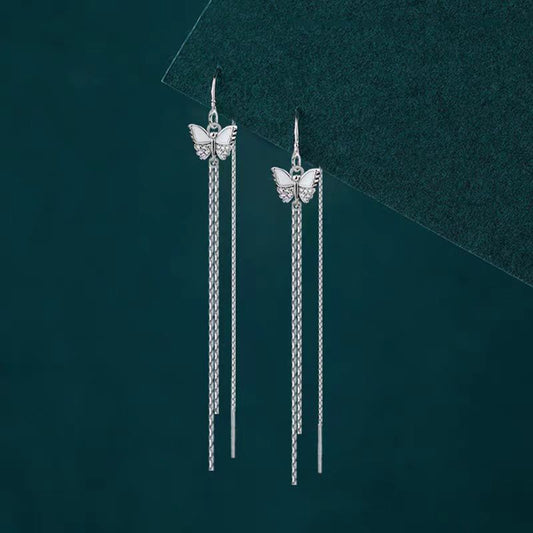 Sterling Silver Elegant Butterfly Tassel Earrings