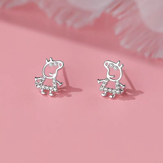 Sterling Silver Elegant Cartoon Peppa Pig Studs
