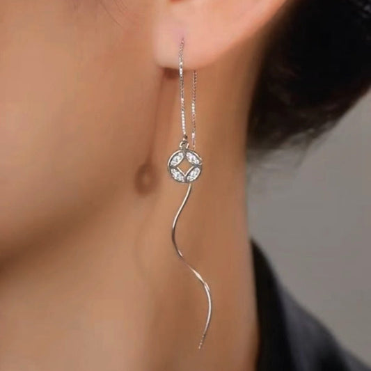 Sterling Silver Elegant Diamond Ball Tassel Earrings
