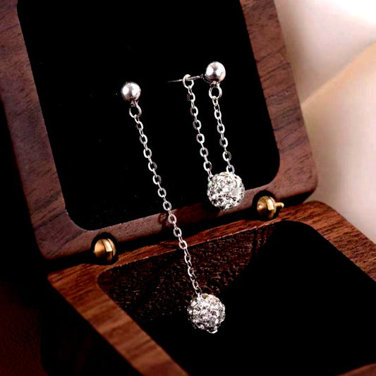 Sterling Silver Elegant Diamond Ball Chain Earrings