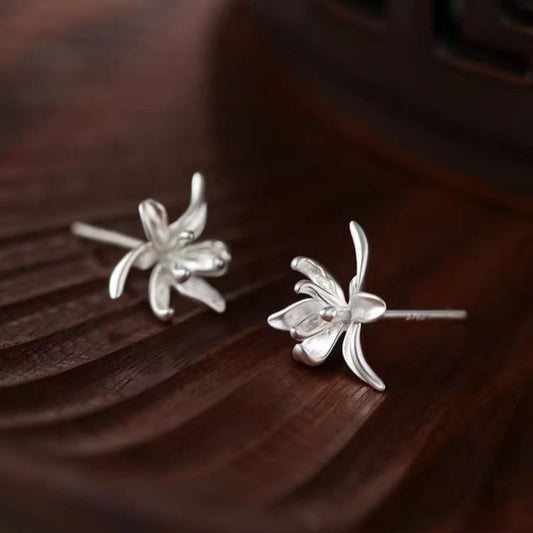 Sterling Silver Elegant Iris Flower Stud Earrings