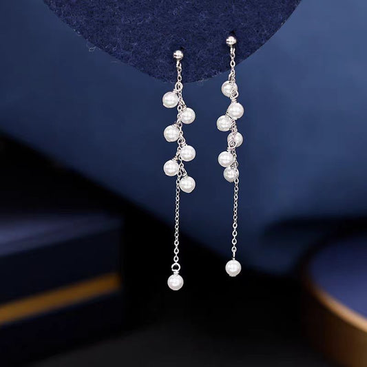 Sterling Silver Elegant Long Chain Pearl Earrings