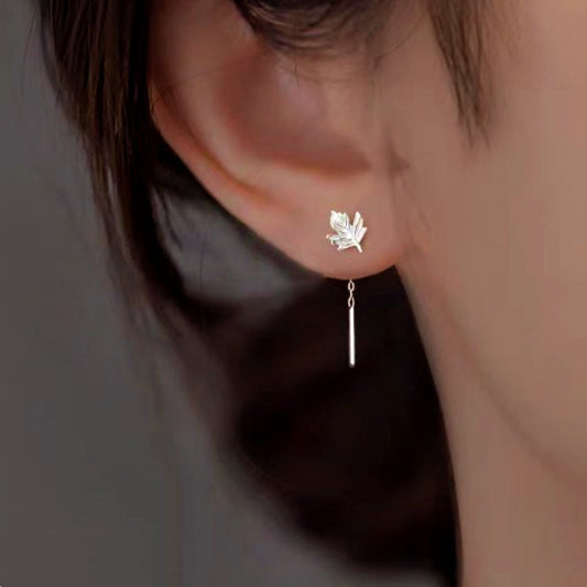 Sterling Silver Elegant Maple Leaf Threader Earrings