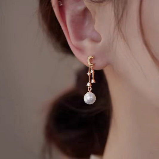 Sterling Silver Elegant Moon Star And Pearl Earrings