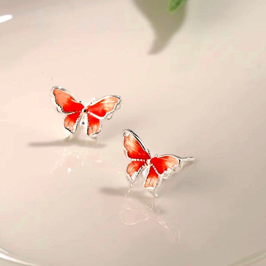 Sterling Silver Elegant Orange Butterfly Stud Earrings