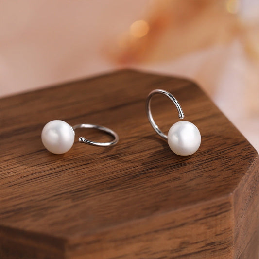 Sterling Silver Elegant Pearl Ear Hook Earrings