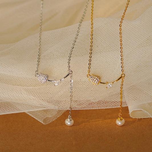 Sterling Silver Elegant Tulip Flower Pearl Necklaces