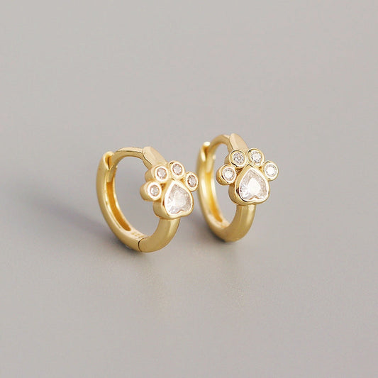 Sterling Silver Elegant Zircon Cute Cat Paw And Foot Earrings
