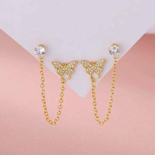 Sterling Silver Elegant Zircon Pierced Butterfly Earrings