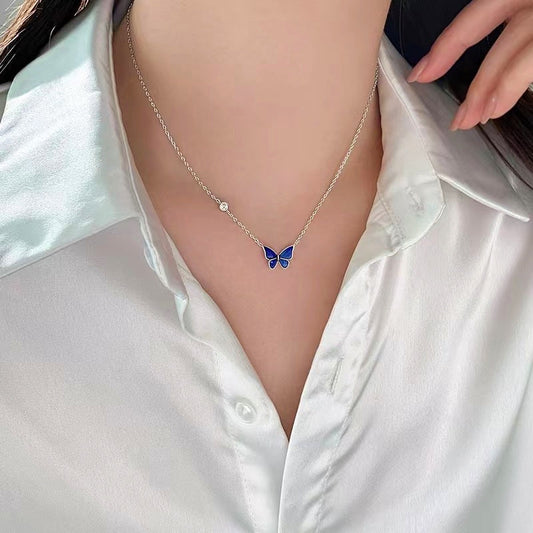 Sterling Silver Elegent Black And Blue Butterfly Necklaces