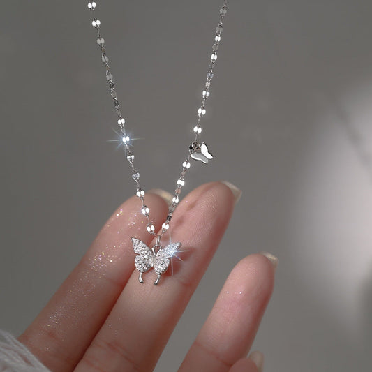 Sterling Silver Elegant Zircon Heart-Design Butterfly Necklaces