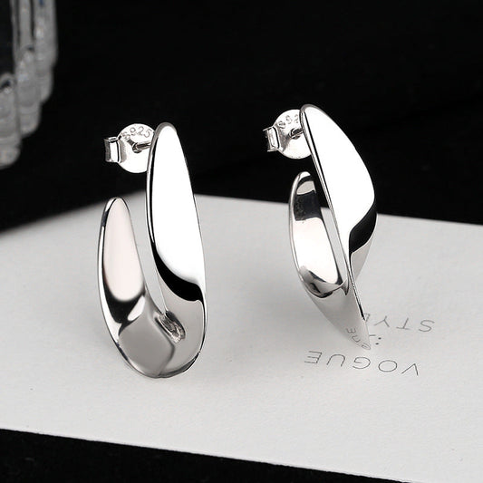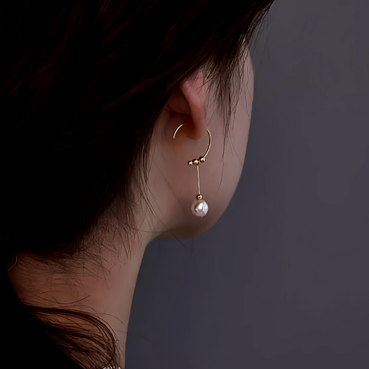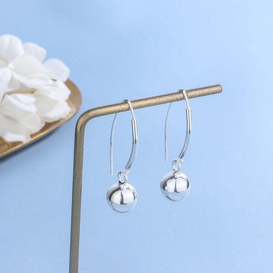 Sterling Silver Geometric Ball Bead Curved Hook Earrings