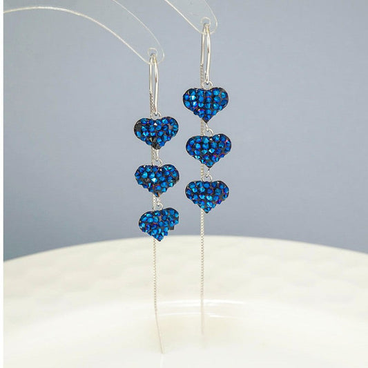 Sterling Silver Heart Pearl Tassel Threader Earrings