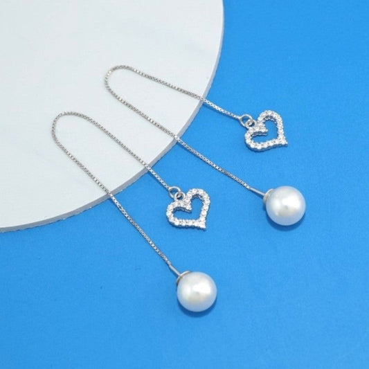 Sterling Silver Heart-Design Pearl Threader Earrings