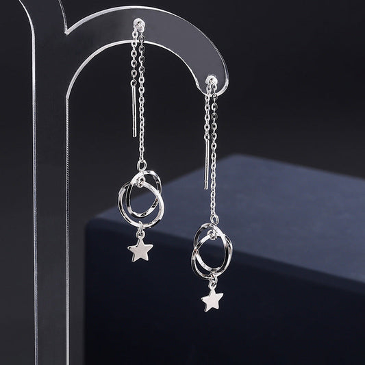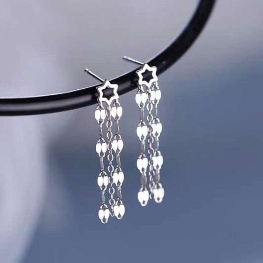 Sterling Silver Interlocking Star Tassel Threader Earrings