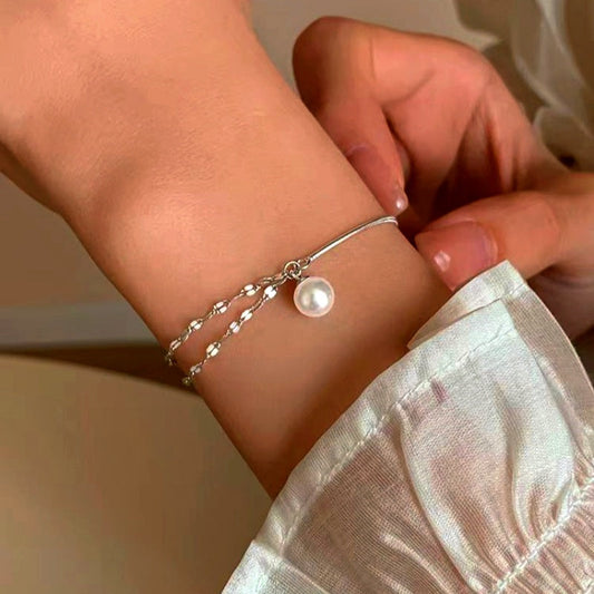 Sterling Silver Luxury Pearl Double-Layer Bracelets