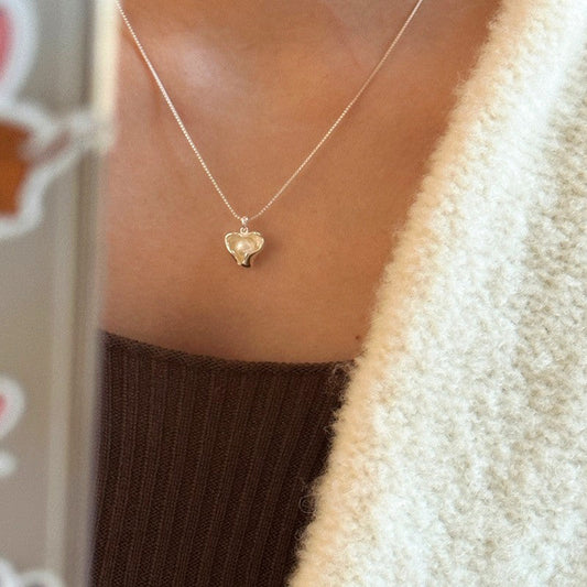 Sterling Silver Luxury Natural Freshwater Pearl Heart Necklace