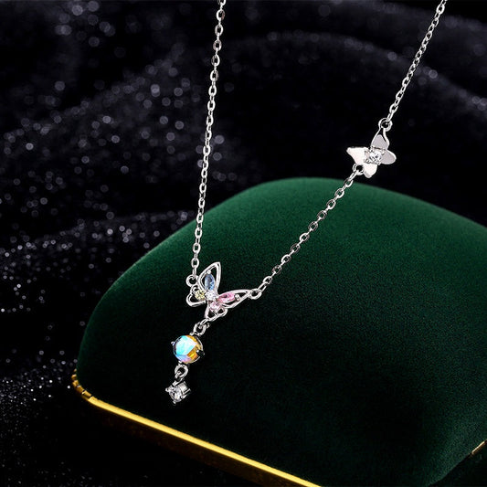 Sterling Silver Moonstone Butterfly Tassel Necklace